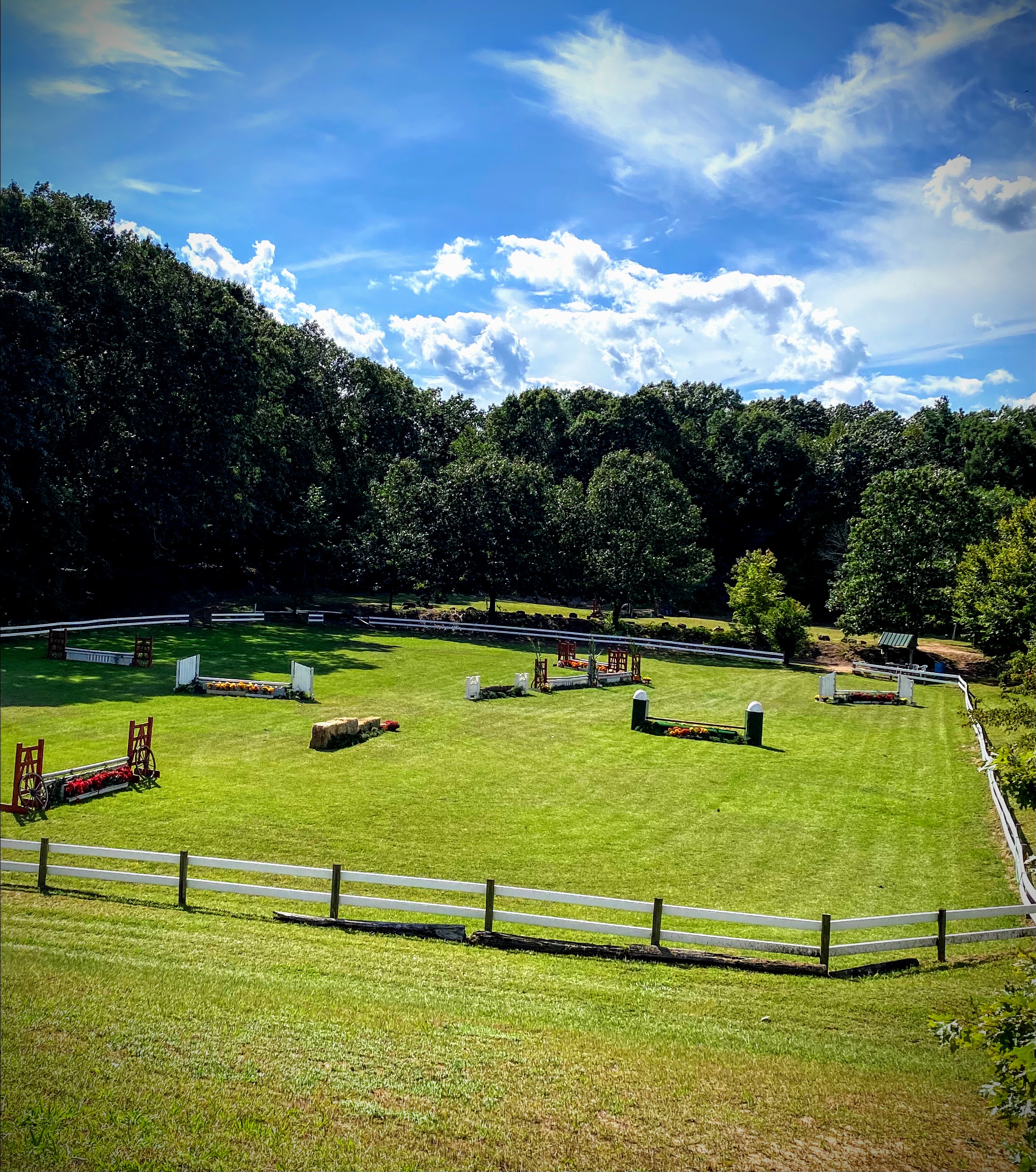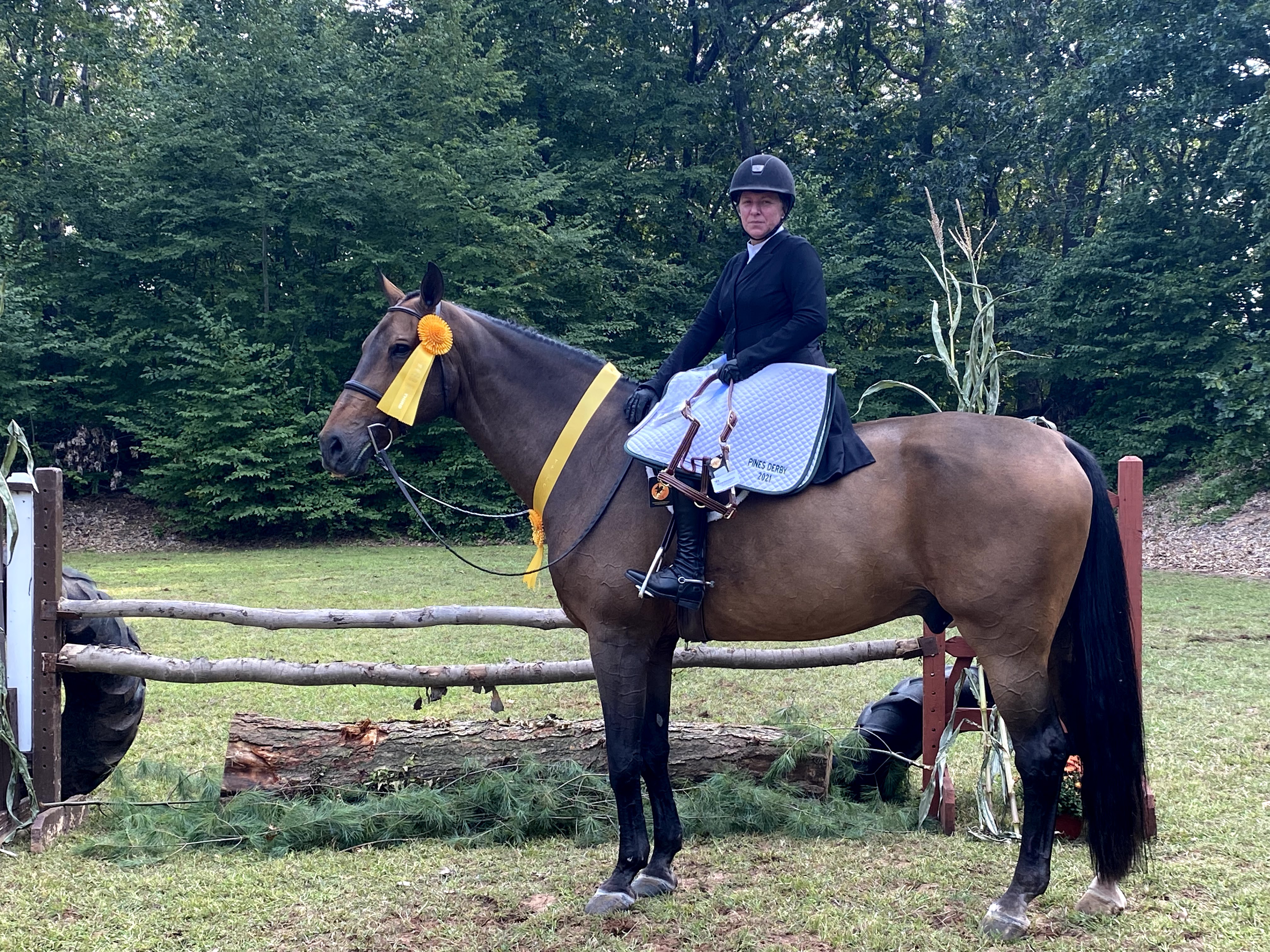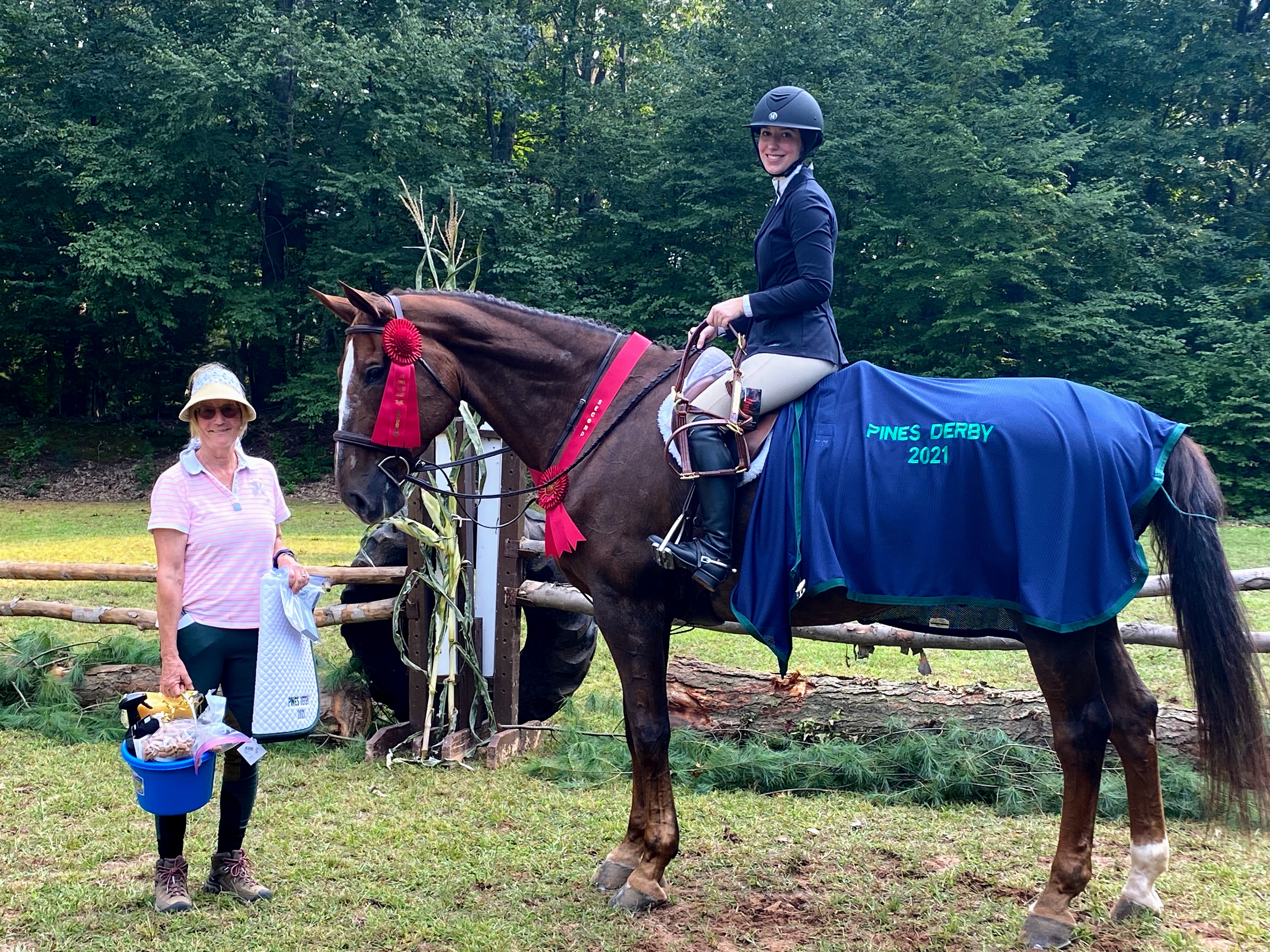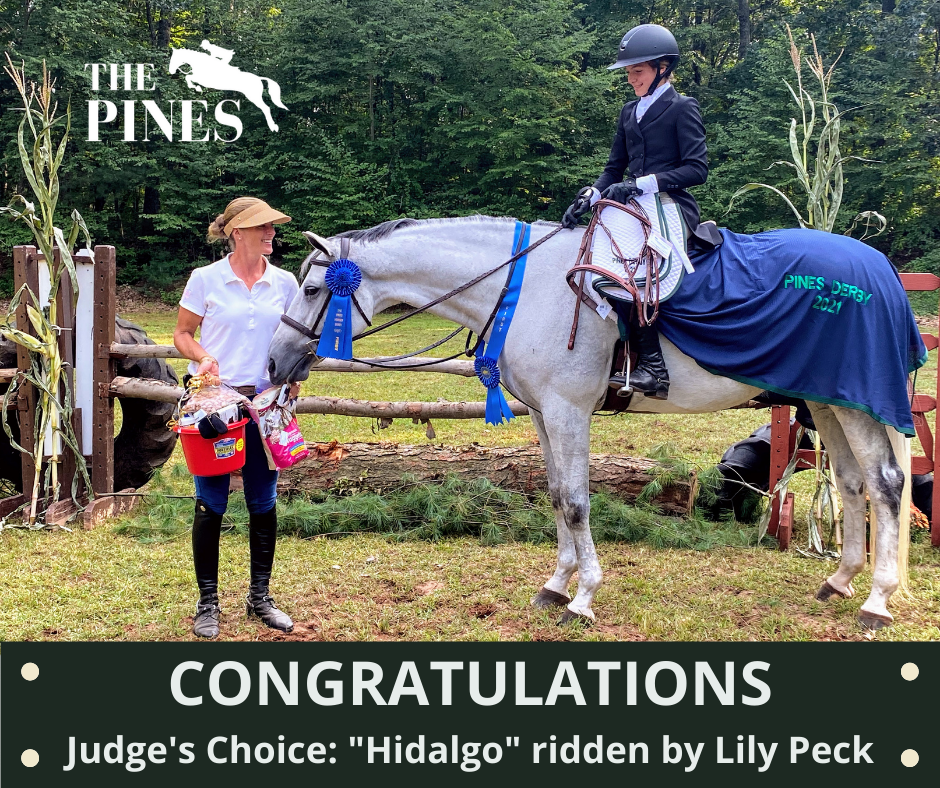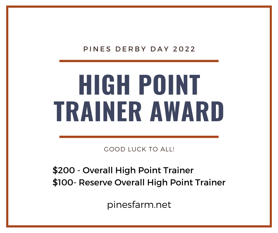 Each class runs as a two round hunter derby with numerical scoring. The handy round is held on the outside course with natural obstacles. Derbies are not restricted as far as horse or rider status. Cross-entry between the Sapling and Pines Derby is permitted with the same or different horse/rider combination. However, a horse may compete in only one height section of either derby.